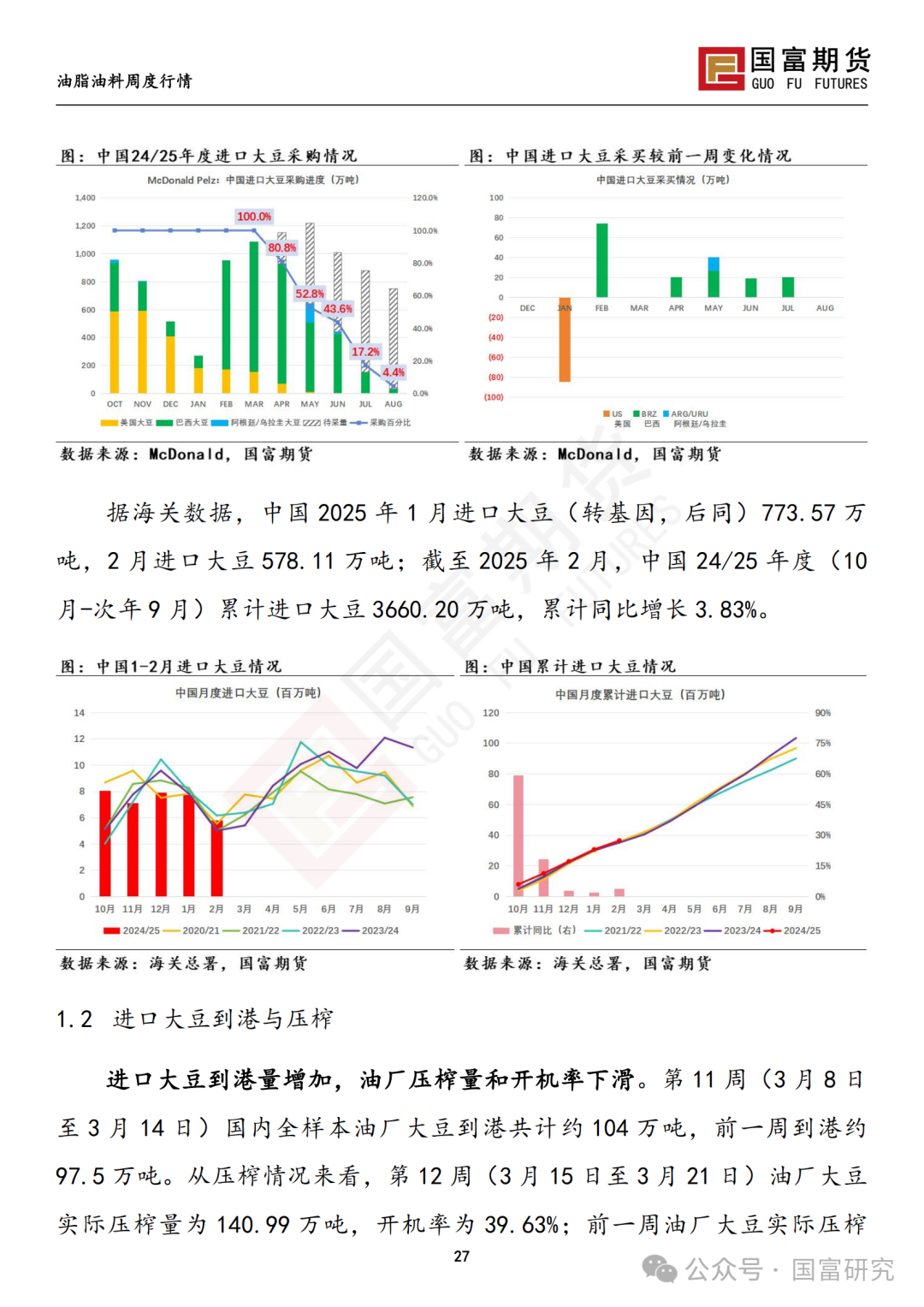 【国富豆系商议周报】豆系价钱承压,热心大豆入口节律